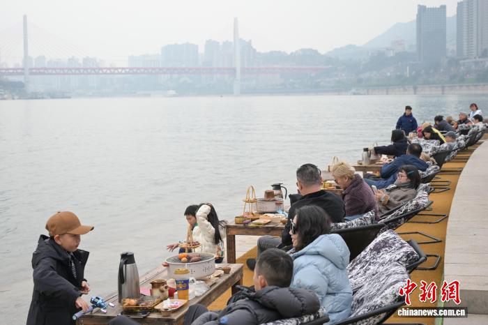 今日沉庆北滨道海棠烟雨花园,市平易近、乘客正在少江干“围炉煮茶”,体味冬季戚忙新场景,乐享缓死活。中新社记者 何蓬磊 摄